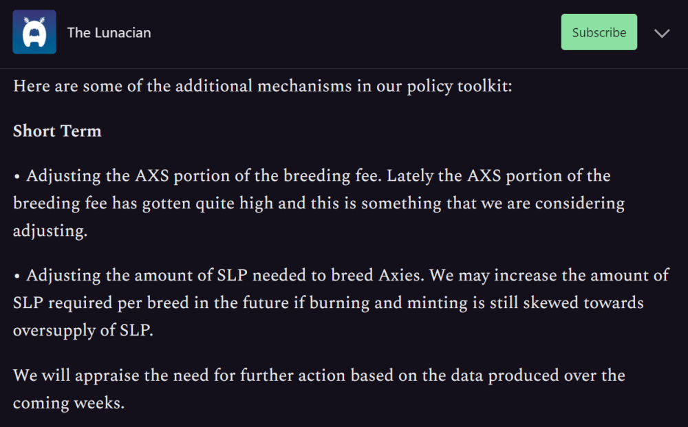 - This is something we are seeing with Sky Mavis slowly giving up control of the Axie community to $AXS holders, see later