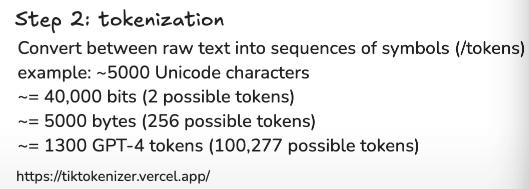 - Turning each string of texts into a number/symbol. Example from the Tiktokenizer tool: