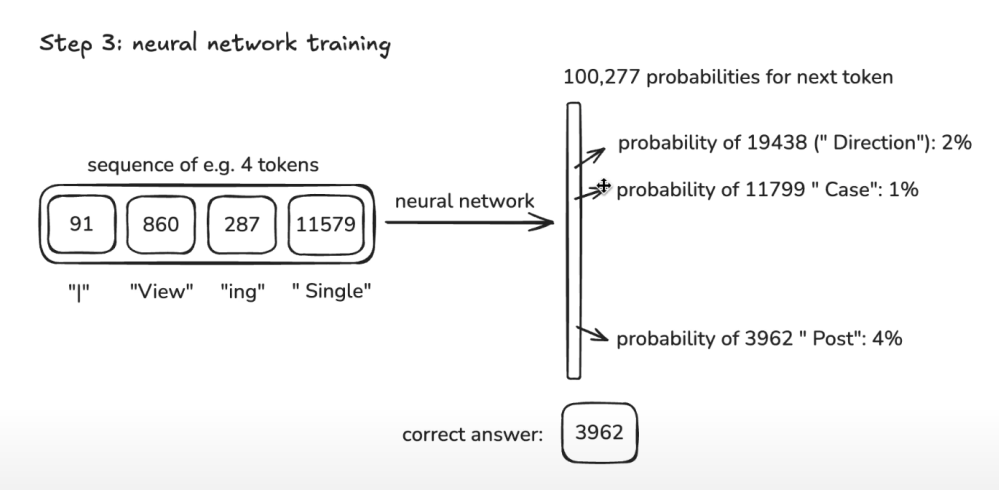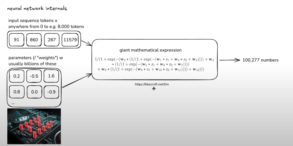 - The probabilities of each token for each set of contexts are the model ‘weights’. For example GPT-2 in 2019 had 1.6B parameters, in 2025 they have 100s of billion