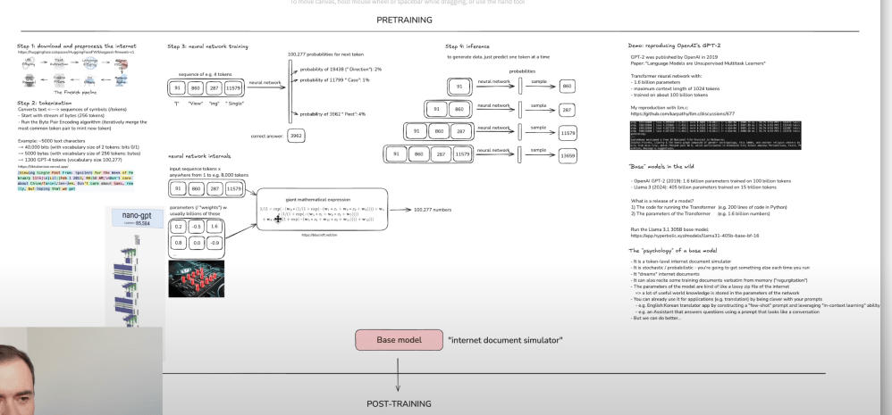- What you end up with post training. Not an assistant, it is just a ‘glorified autocomplete’ based on what it’s trained on. And it’s stochastic / probabilistic