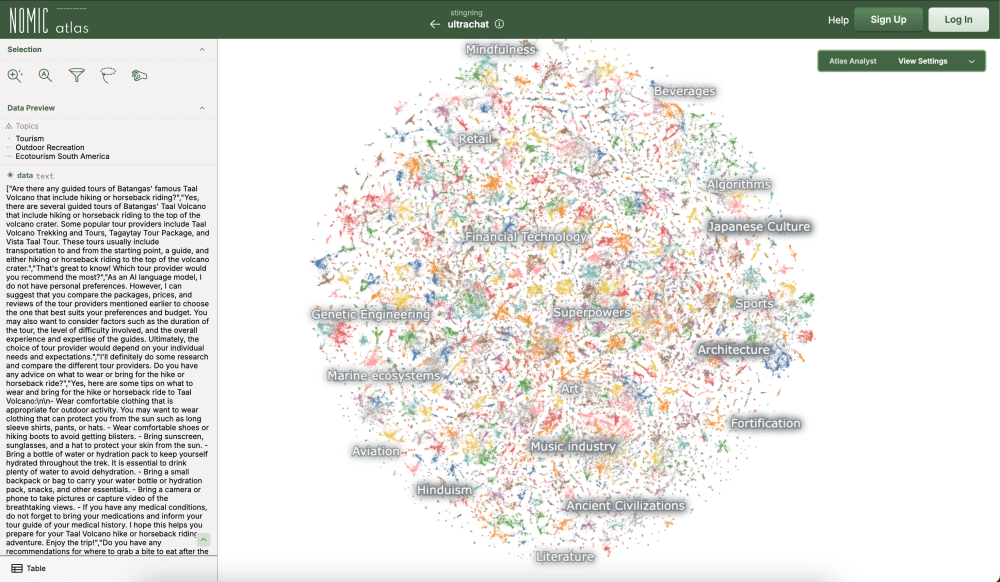 - Nomic Atlas – data visualisation site for AI data sets, eg conversation data for SFT